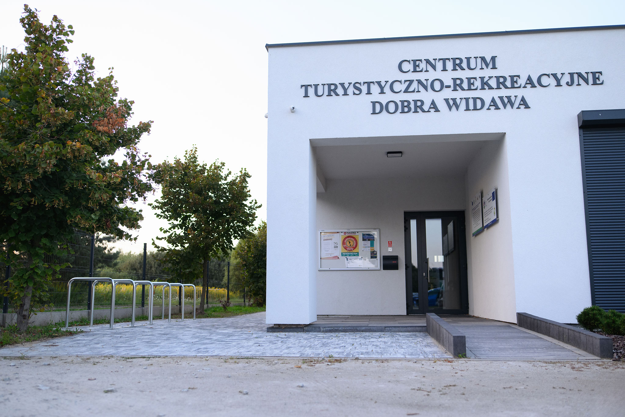Wygodne stojaki na rowery zachęcają podróżujących rowerami do bezpiecznego pozostawienia ich przy naszym Centrum i udaniu się na 3 ścieżki przyrodnicze z grami edukacyjnymi w tym Astrościeżkę, na piękny plac zabaw m.in.: z tyrolką i mysią norką.
